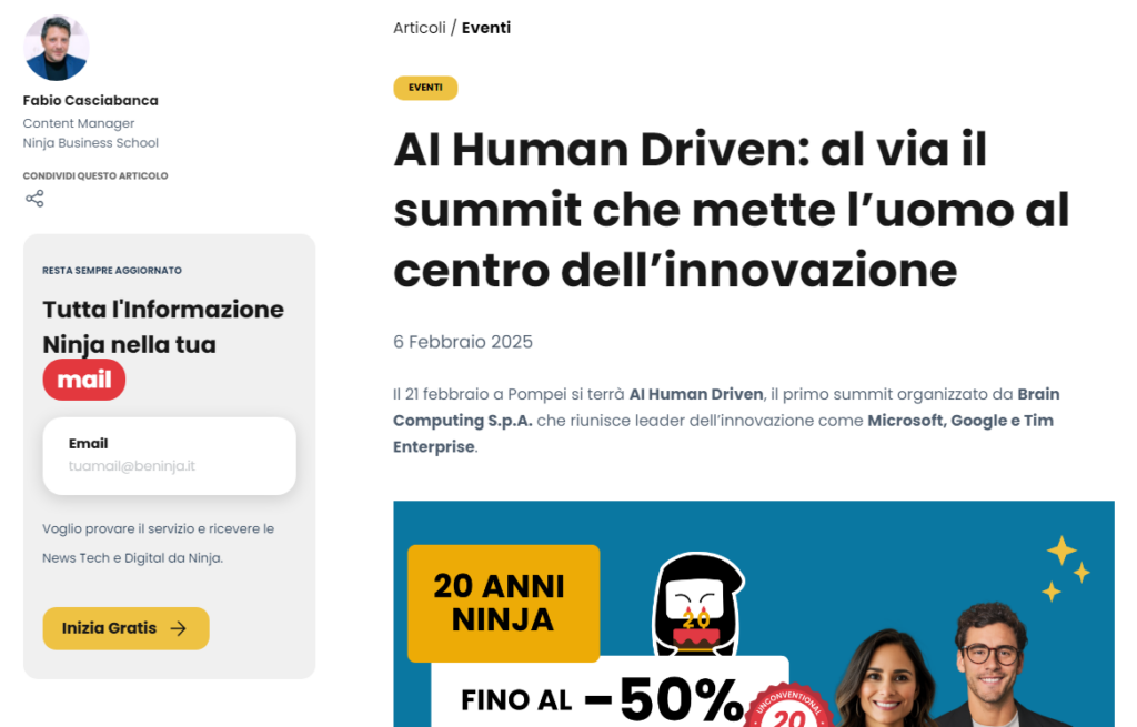A Pompei si discute dell’intelligenza umana per governare l’IA Microsoft, Google, Tim Enterprise e altri colossi del settore tecnologico prenderanno parte a “AI Human Driven”, il primo summit organizzato