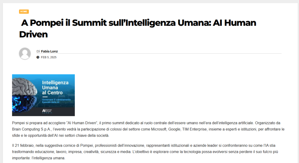 A Pompei il Summit sull’Intelligenza Umana: AI Human Driven
